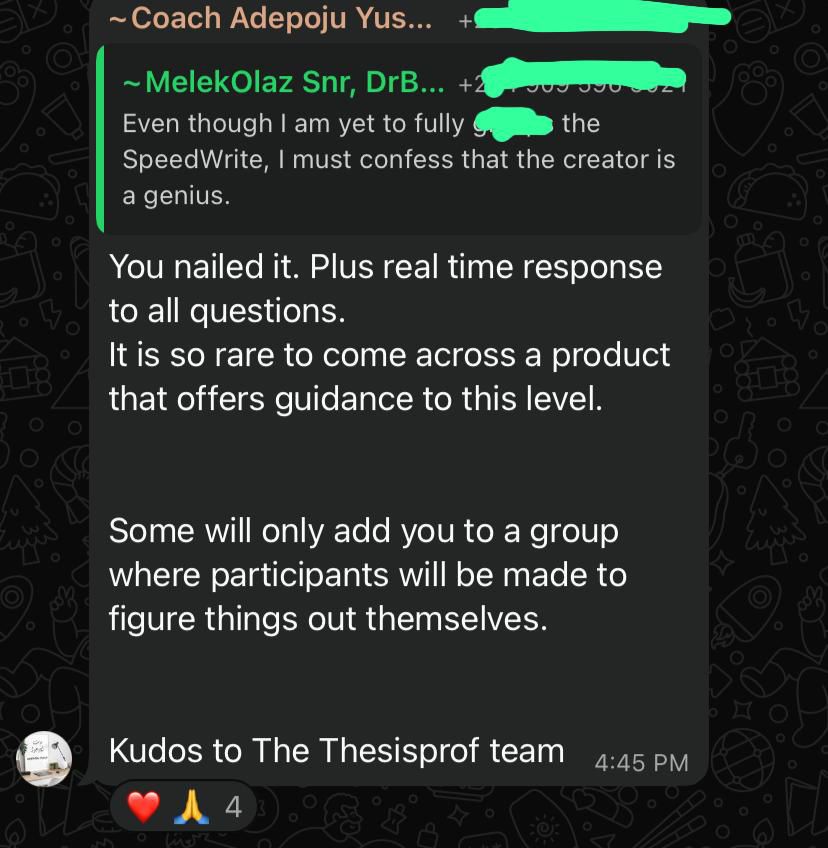 Join a private community of 400+ scholars where you can ask questions, get guidance, and learn from others actively writing their theses. The group never closes, so help is always available.
